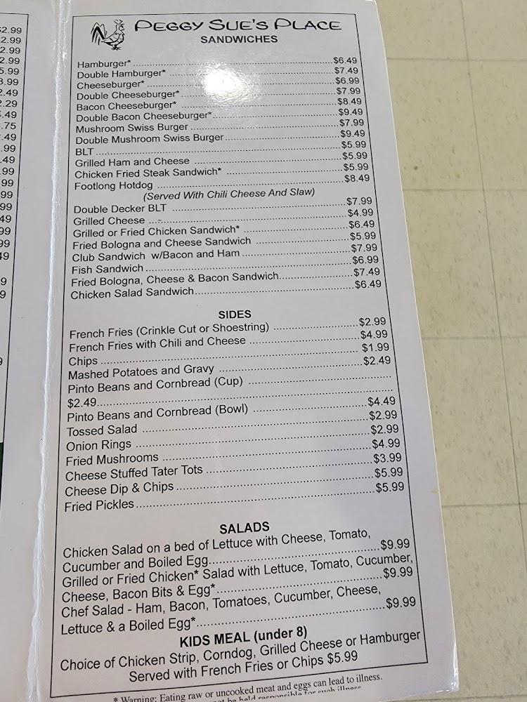 Peggy Sue's Place features a diverse menu centered around Southern cuisine. Breakfast offerings include loaded hash browns, fluffy pancakes, omelets, and more. Kids also have options tailored just for them, ensuring the whole family enjoys their visit.